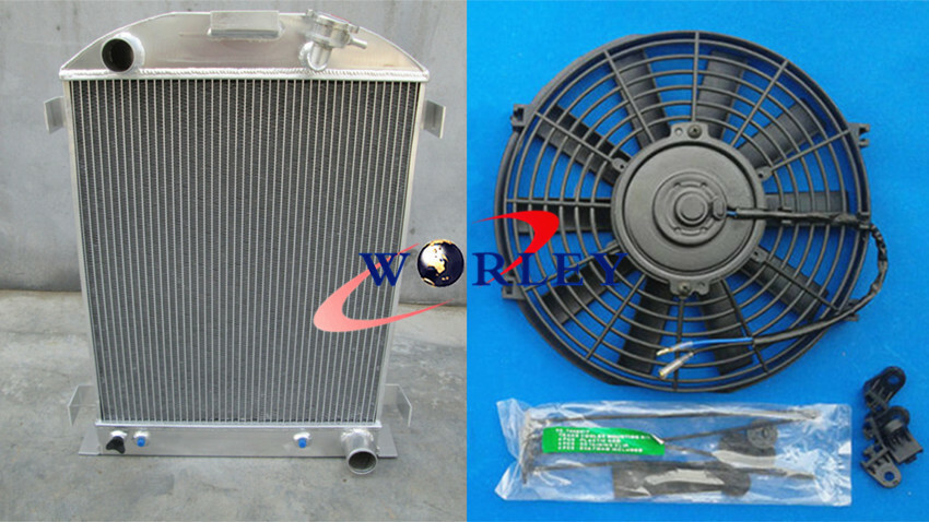For FORD HI-BOY RADIATOR+ 16″ Fan GRILL SHELLS CHEVY ENGINE 1932 ALUMINUM AT/MT
