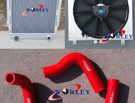 3 Core Aluminum radiator & Shroud & Fan & Blue Hose for DATSUN 1200 Manual
