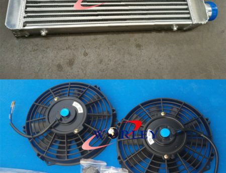 Front Mount Aluminum turbo Intercooler 600x300x70mm same side 76mm In/Out & FANS