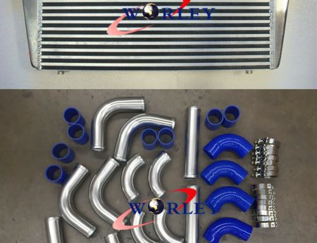 Front Mount Intercooler 600x300x76mm+3" aluminium piping+BLUE Silicone Hose kit